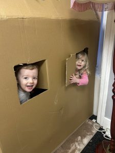 What’s the best thing about getting a fabulous delivery of new role-play kitchen furniture, children’s drawer units, tables and chairs and play panels….. obviously not the spangly new equipment, but the MASSIVE boxes they all came in……. Sooooo much fun playing house and building in them as a den and we think some fabulous crafting …