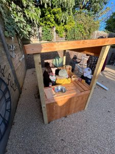 Emma and Tia got busy in our shop area outside yesterday. The Elephants children were exploring and interacting as they investigated the shop’s resources and Emma and Tia sensitively encouraged communication and conversation as they played together. It might be turning colder, but our children’s ideas and interactions are still heating up!! There’s no shouting …