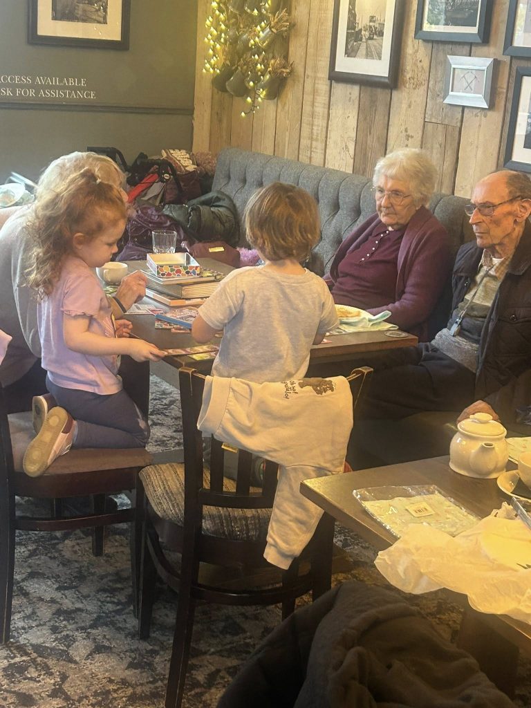 Our children sat and had their snack and a drink whilst waiting for the ladies and gents to finish up and then they got together and had a natter and played some games. It was so lovely to see this cross generational interaction and our children loved to meet and make some new friends.