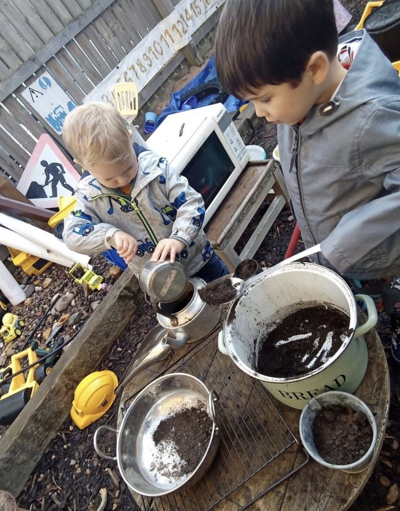 Imagination, friendship, creativity, negotiation, hand/eye coordination, turn-taking, conversation, idea development, counting, quantity exploration, sequencing, sharing, moulding, mixing, scooping, emptying and filling are just a few of the things on the menu….