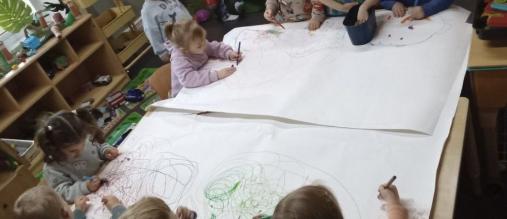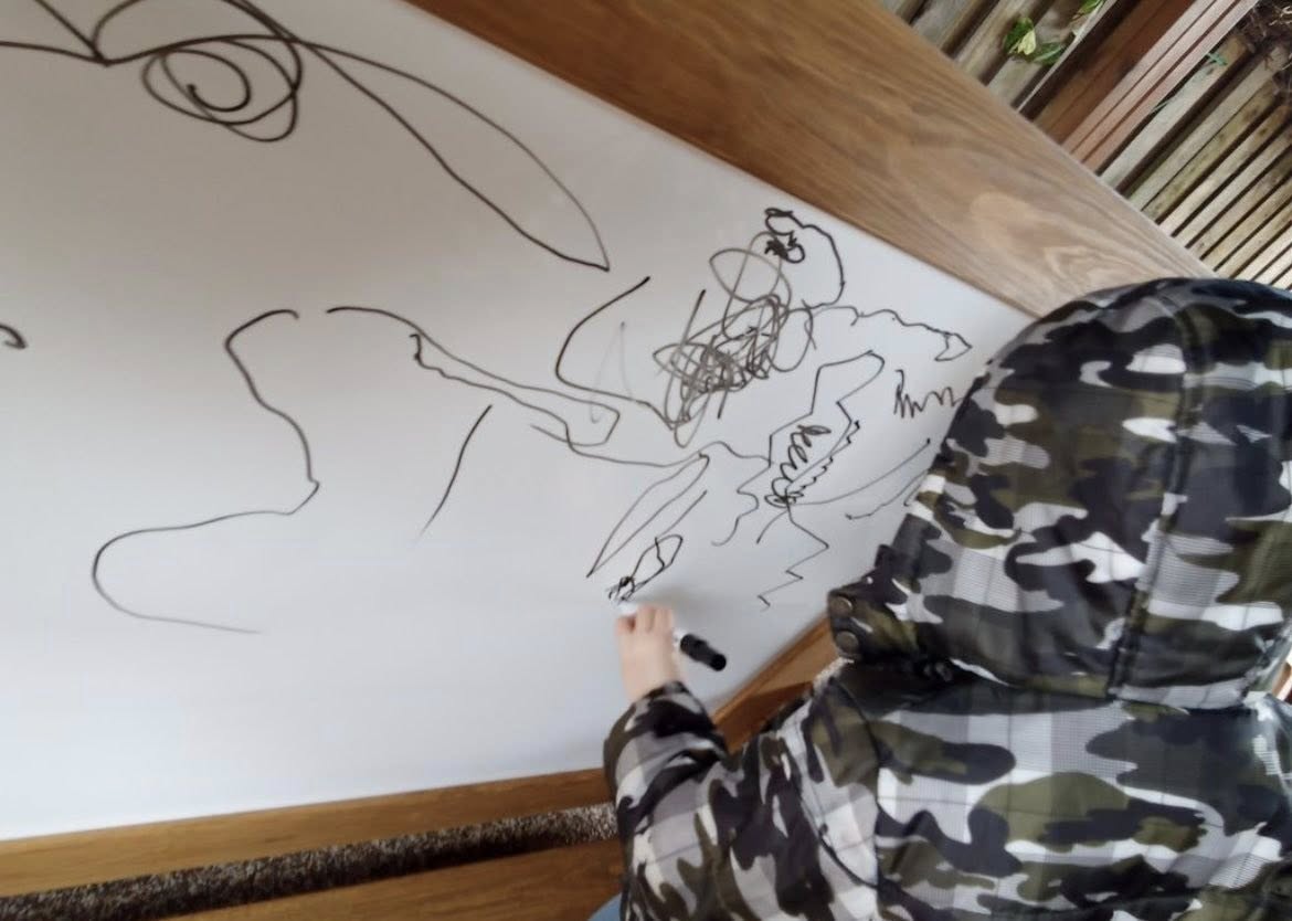 Then afterwards… they got creative in a different way by using Kelly’s discarded backing paper as a giant canvas for their artwork!!!