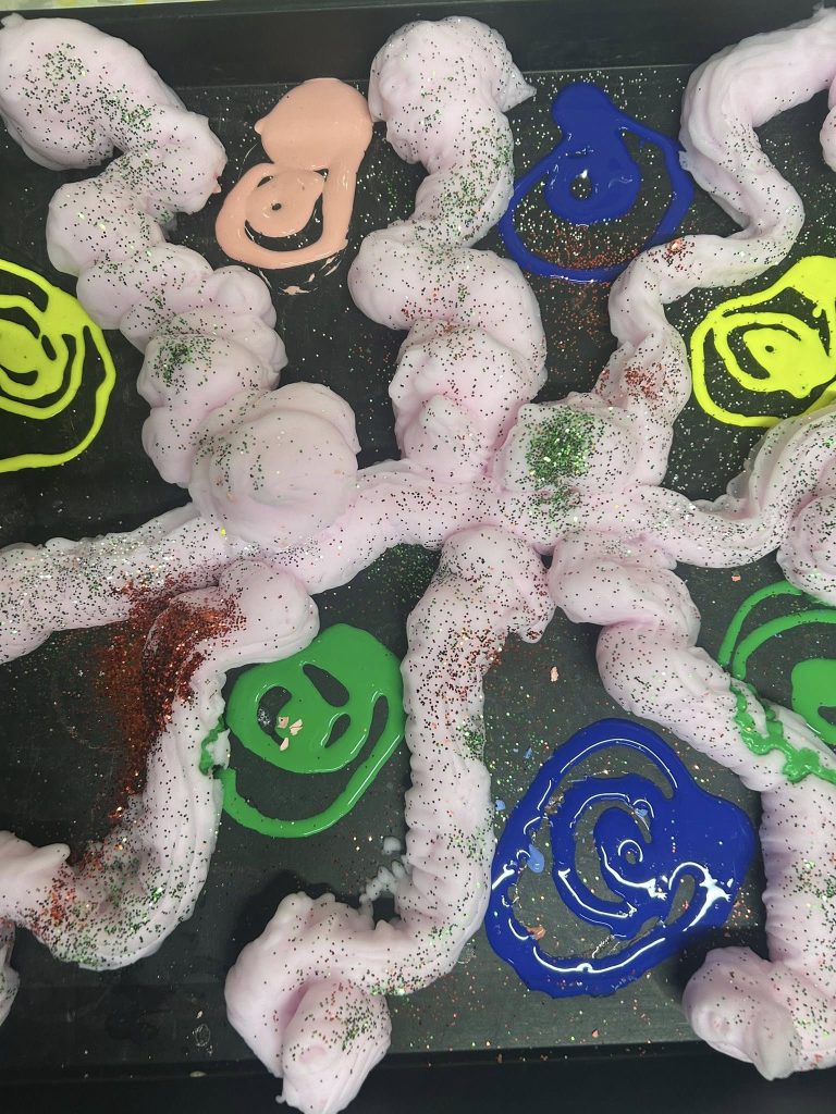 So their interests have formed the inspiration for some wonderful mark-making activities and they’ve also sparkled up our playdough too…. Accompanied by pops, BANGS and whizzes from a fireworks soundtrack to really bring the experience to life!!